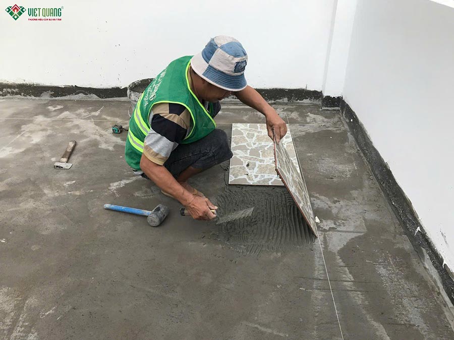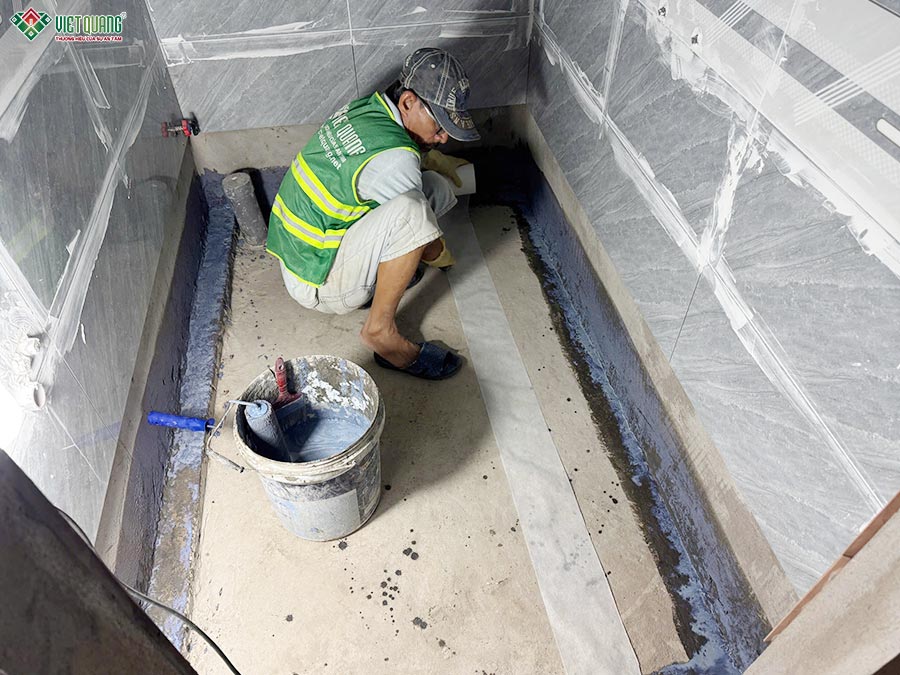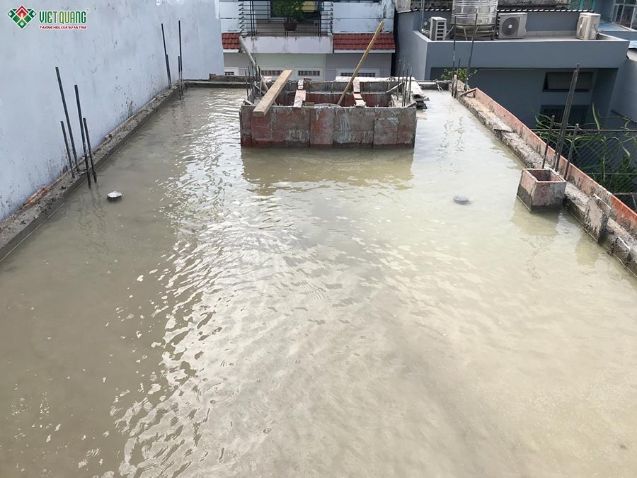 Bước vào giai đoạn thi công xây dựng phần thô lầu 1, đội ngũ Việt Quang Group tiếp tục duy trì tiến độ song hành cùng chất lượng. Tại tầng này, hai phòng ngủ được bố trí đối xứng, mỗi phòng có nhà vệ sinh riêng. Đội ngũ thi công xử lý chống thấm kỹ lưỡng cho sàn vệ sinh bằng màng chống thấm 2 lớp, đảm bảo an toàn lâu dài.