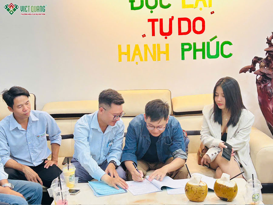 Trong hợp đồng, các điều khoản về tiến độ, chi phí và chất lượng đều được minh bạch, rõ ràng. Việt Quang Group cam kết sử dụng vật liệu đạt chuẩn, thi công đúng kỹ thuật và đảm bảo an toàn lao động trong suốt quá trình xây dựng. Đặc biệt, công trình sẽ được giám sát chặt chẽ ở từng hạng mục, từ phần móng đến phần hoàn thiện, nhằm mang lại kết quả tốt nhất cho gia chủ.