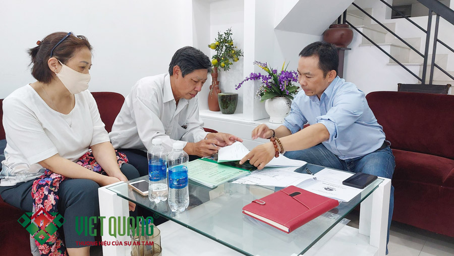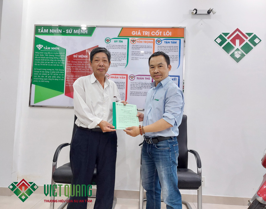 Vào ngày 01/03/2022, Việt Quang Group vinh dự đón tiếp Chú Cường – Cô Tuyết tại trụ sở chính quận Bình Thạnh của công ty để kí kết hợp đồng xây nhà mới tại quận 3 của gia đình Cô Chú.