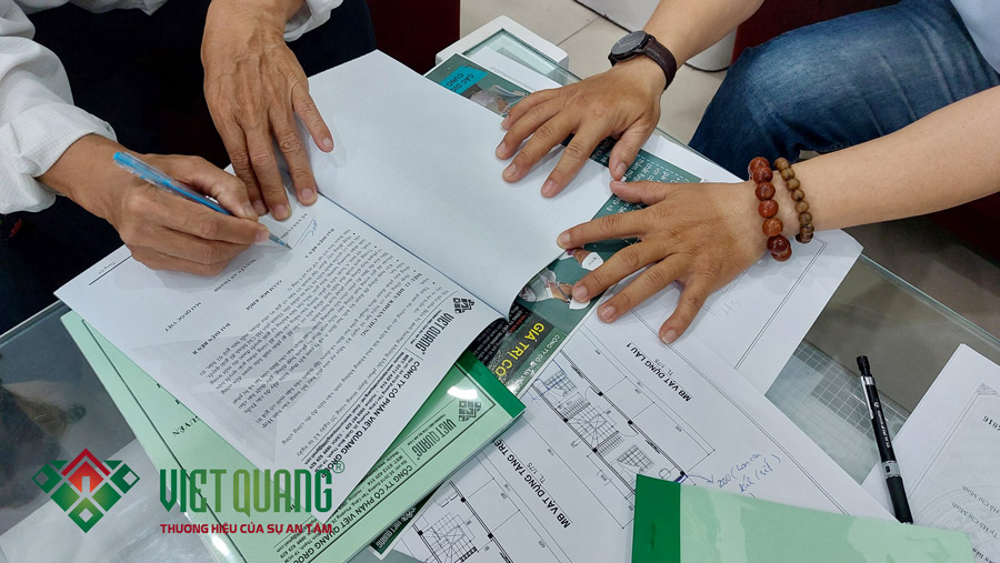 Dưới đây là một số hình ảnh kí hợp đồng xây nhà của Việt Quang Group và gia đình Chú Cường.