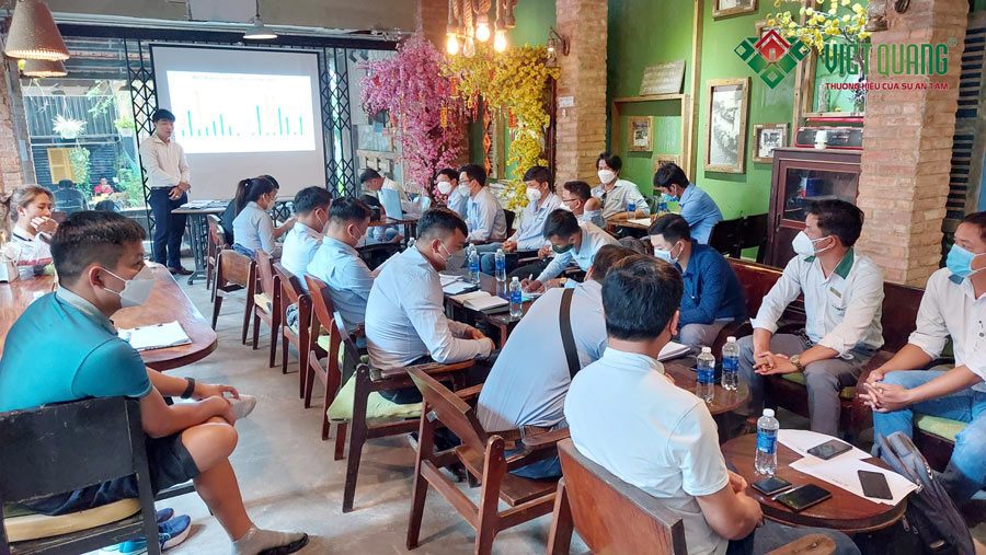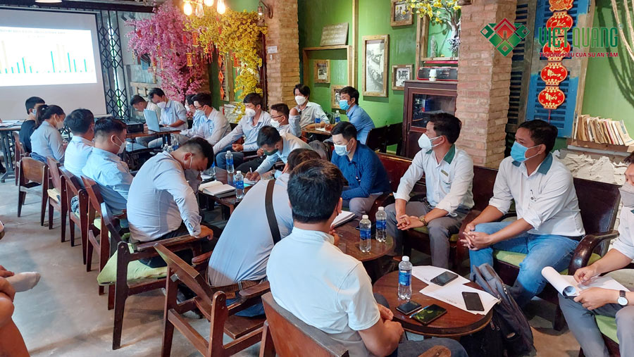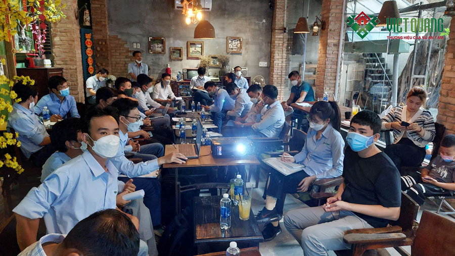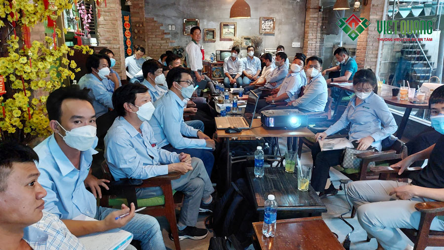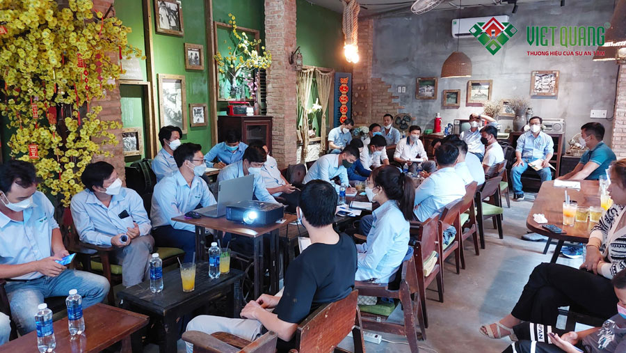 Đúng như kế hoạch hàng tháng Việt Quang Group tổ chức họp định kì toàn công ty một lần để tất cả nhân sự trong công ty có dịp gặp gỡ nhau, chia sẻ kinh nghiệm làm việc, điều quan trọng nhất mà các cuộc họp hàng tháng là lúc tất cả nhân sự để nhìn lại kết quả đã đạt được trong tháng trước, việc nào đã thực hiện tốt, việc nào chưa? Ngoài ra còn là để lắng nghe những chỉ đạo từ tổng giám đốc để nhân sự toàn thể công ty đi đúng hướng và làm theo sứ mệnh và giá trị cốt lõi của công ty đã đề ra, làm sao để cho Khách Hàng hài lòng, làm sao để thỏa mãn giấc mơ mà Khách Hàng mong muốn.