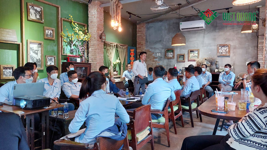 Vào ngày 15/03/2022, Việt Quang Group tổ chức cuộc họp tháng tại một quán cafe đẹp, có không gian thoáng mát để tiến hành cuộc họp.