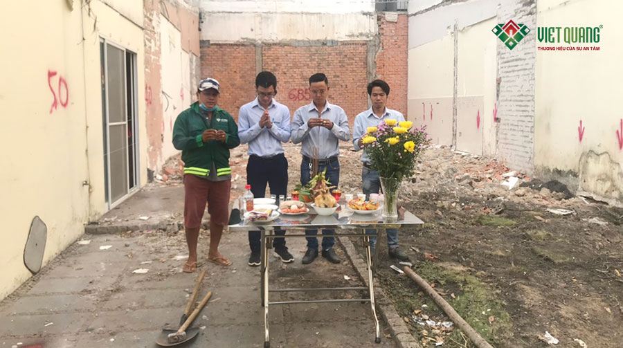 Vào ngày 21/04/2020, Đội ngũ nhân sự Việt Quang làm lễ khởi công xây dựng nhà phố 4 tầng có diện tích 6.85×13.6m tại quận Tân Bình.