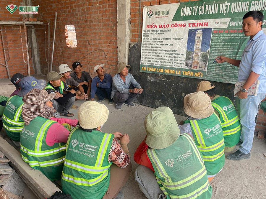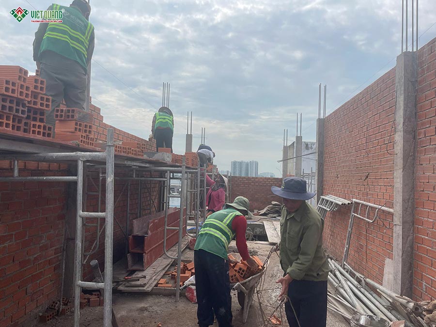 Ngoài ra, quy trình vệ sinh công trường, sắp xếp vật tư, dọn dẹp khu vực thi công được thực hiện liên tục, giữ cho mặt bằng luôn gọn gàng, an toàn. Tất cả các hạng mục đều được nghiệm thu kỹ thuật trước khi chuyển sang giai đoạn tiếp theo, đảm bảo công trình đạt đúng yêu cầu về chất lượng, an toàn và tiến độ.