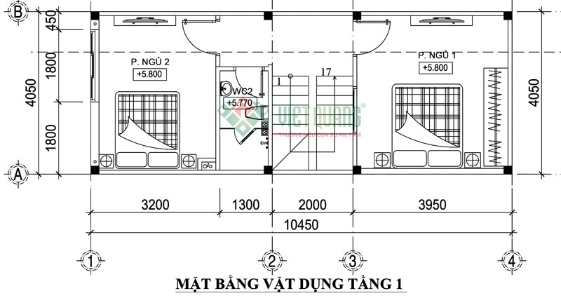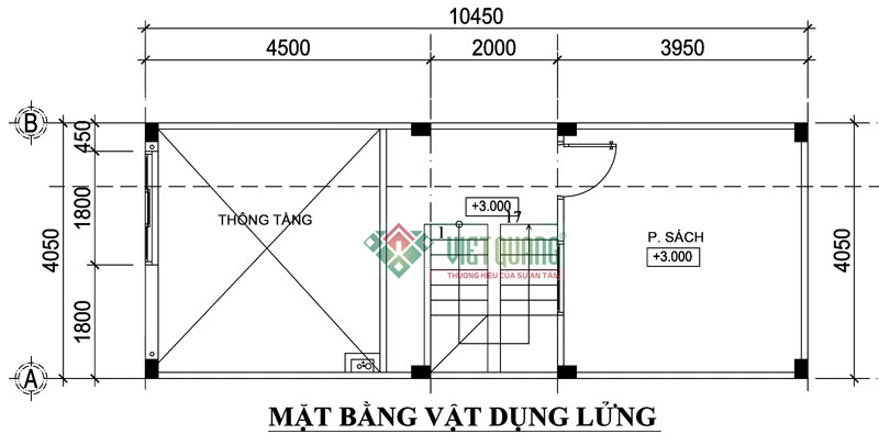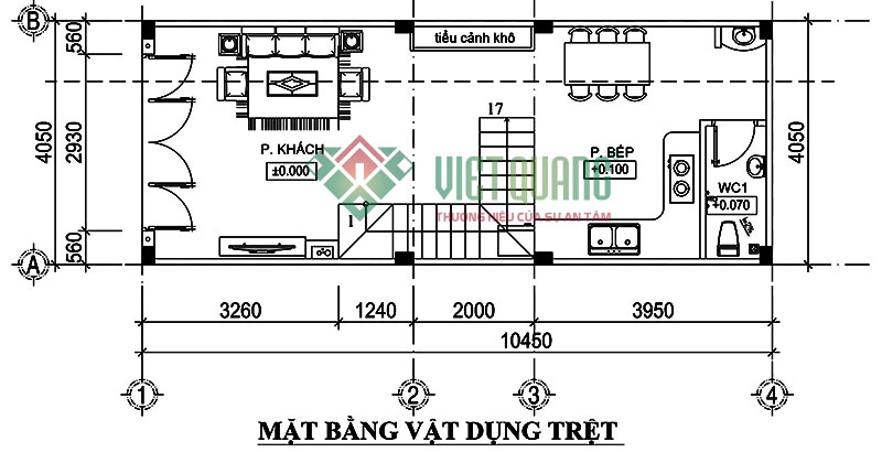 - Diện tích xây nhà: 4,05 x 10,45m = 42.3m²