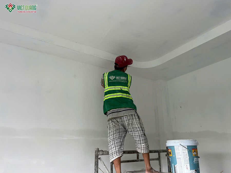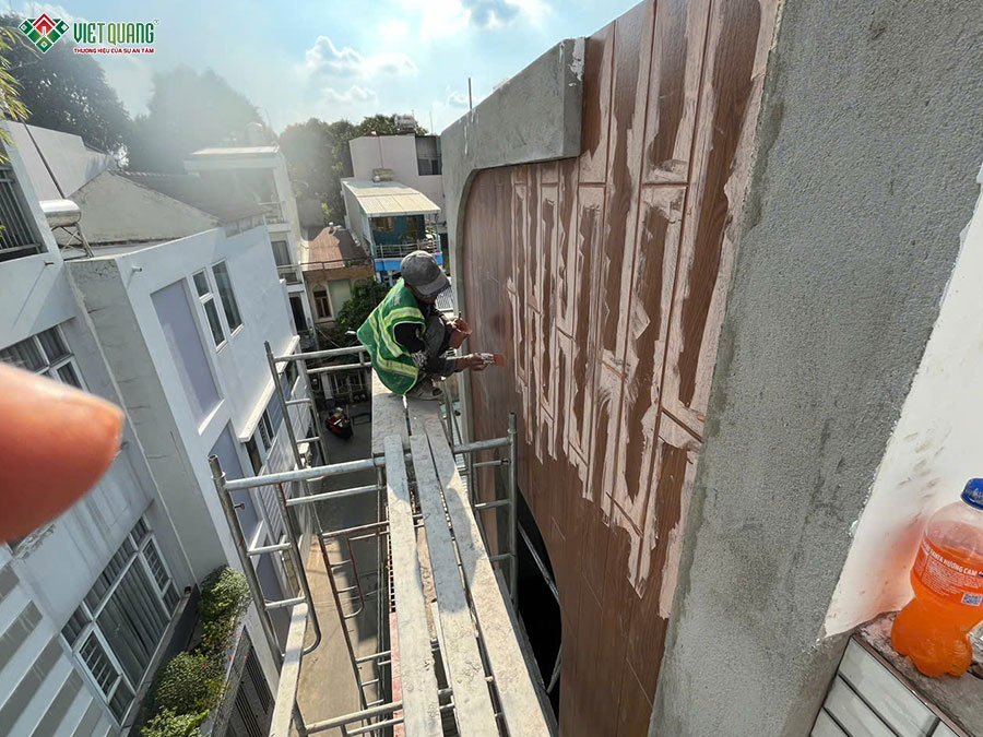 Giai đoạn hoàn thiện là lúc ngôi nhà 3 tầng dần thành hình và thể hiện rõ phong cách của gia chủ. Lúc này đội ngũ nhân công xây dựng Việt Quang Group tiến hành thi công các hạng mục: Lát gạch, sơn nước, lắp đặt cửa lang can cầu thang, hoàn thiện hệ thống điện nước, chiếu sáng, thiết bị vệ sinh và trang trí nội thất cơ bản. Từng chi tiết được đội ngũ thi công thực hiện cẩn thận, tỉ mỉ để đảm bảo thẩm mỹ, độ bền cho công trình.