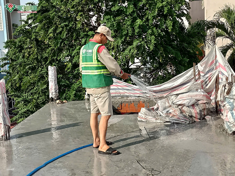 Hình ảnh tưới nước bảo dưỡng bê tông