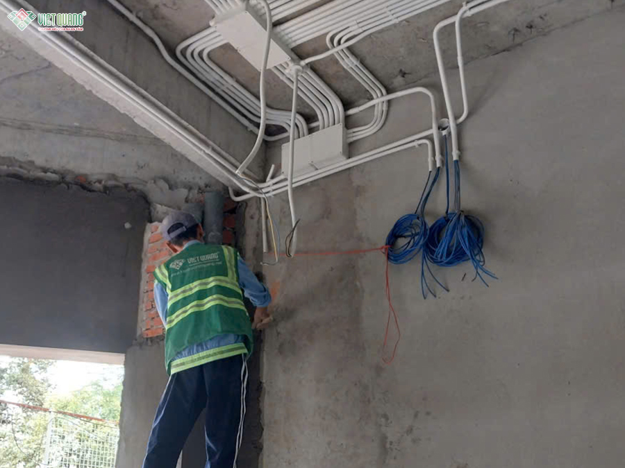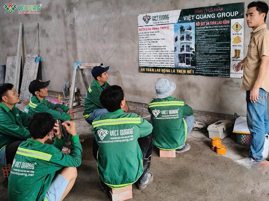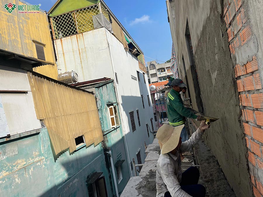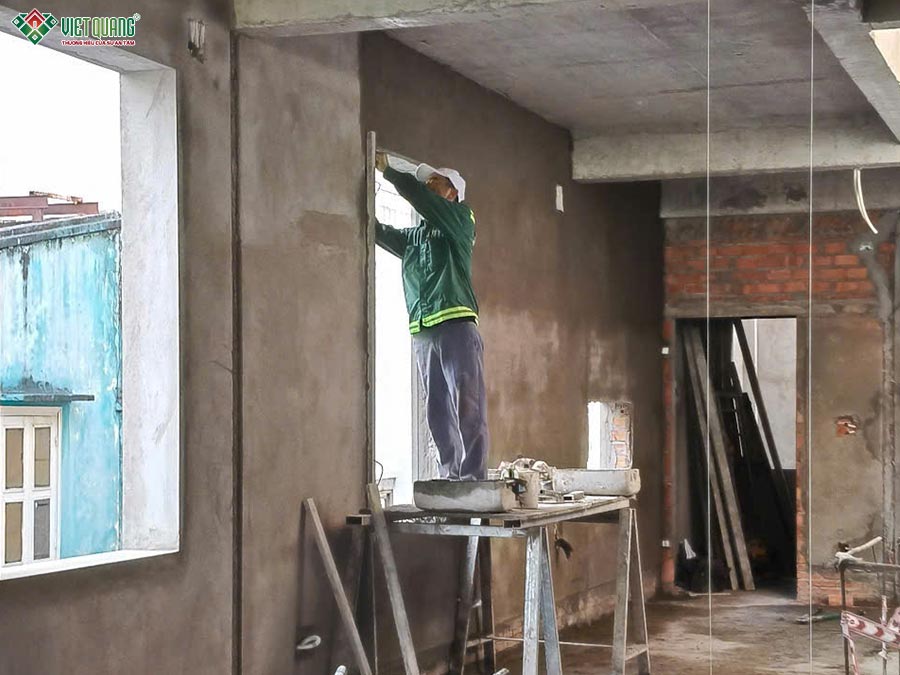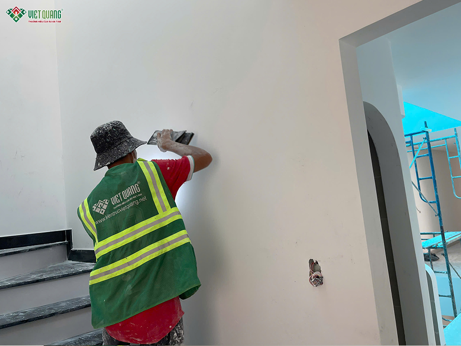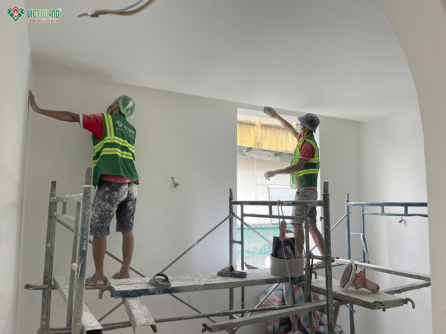 Sau khi hoàn thiện thi công xây dựng phần thô đội ngũ Việt Quang Group triển khai thi công hoàn thiện nhà phố 3 tầng 5x23m, giai đoạn này sẽ quyết định đến thẩm mỹ của toàn bộ công trình. Do đó, việc thi công tỉ mỉ, tính toán chi tiết các hạng mục được thực hiện cẩn thẩm để mang đến sự an toàn trong quá trình thi công và sử dụng nhà ở sau này, đồng thời đảm bảo tính thẩm mỹ cho ngôi nhà.