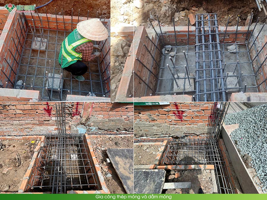 Hạng mục xây móng gồm các công tác, ép cọc, đào móng, xây tô hầm tự hoại, hố pit thang máy, hố ga, thi công thép móng, đà kiềng, dầm móng, bê tông lót móng, lắp đặt ống thoát nước. Ở giai đoạn này, bạn cần lưu ý thi công tai thỏ chống hôi cho hố ga, đảm bảo mang đến không khí trong lành, thoải mái khi sử dụng ngôi nhà. Sử dụng gạch đinh hầm tự hoại tăng cường khả năng chịu tải, chống thấm ngược.