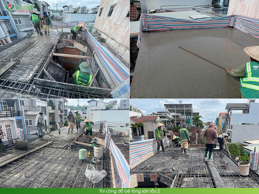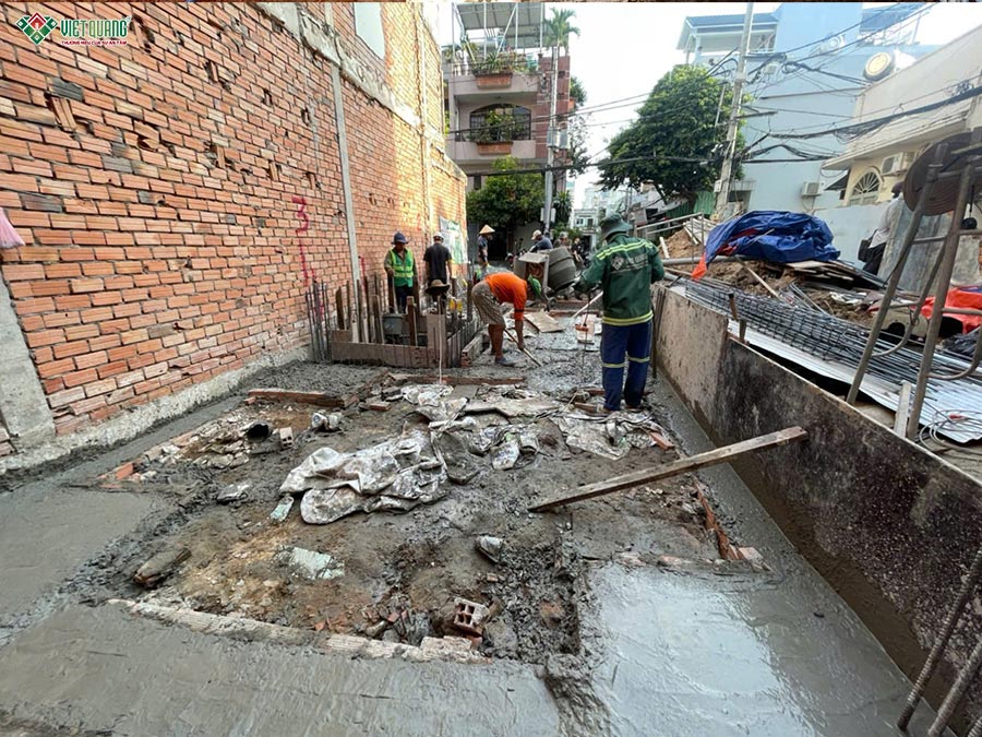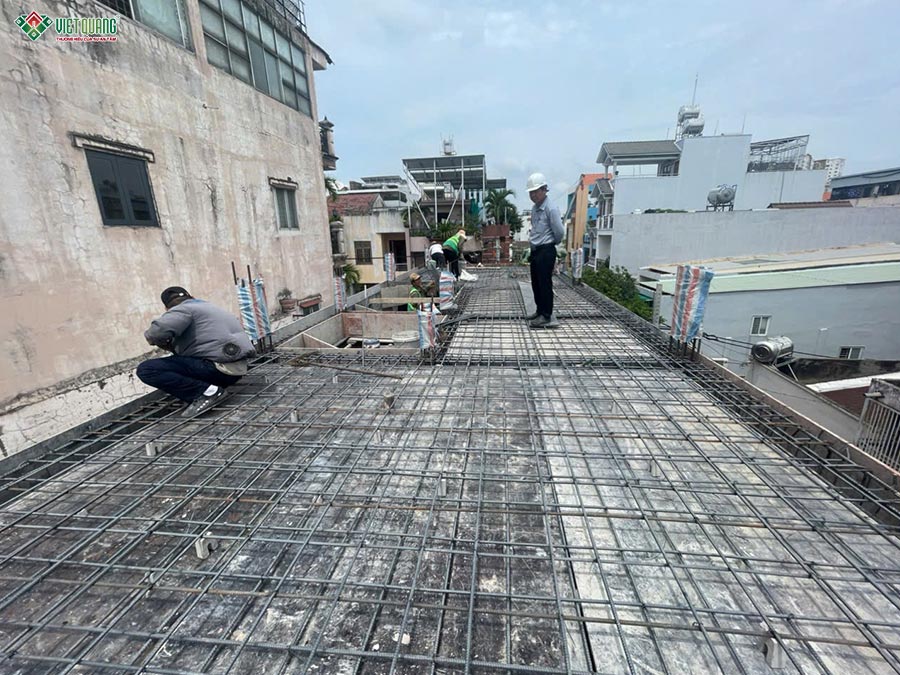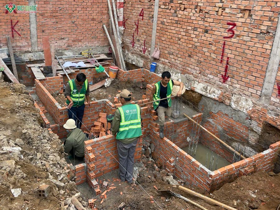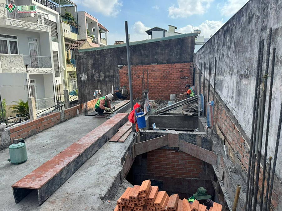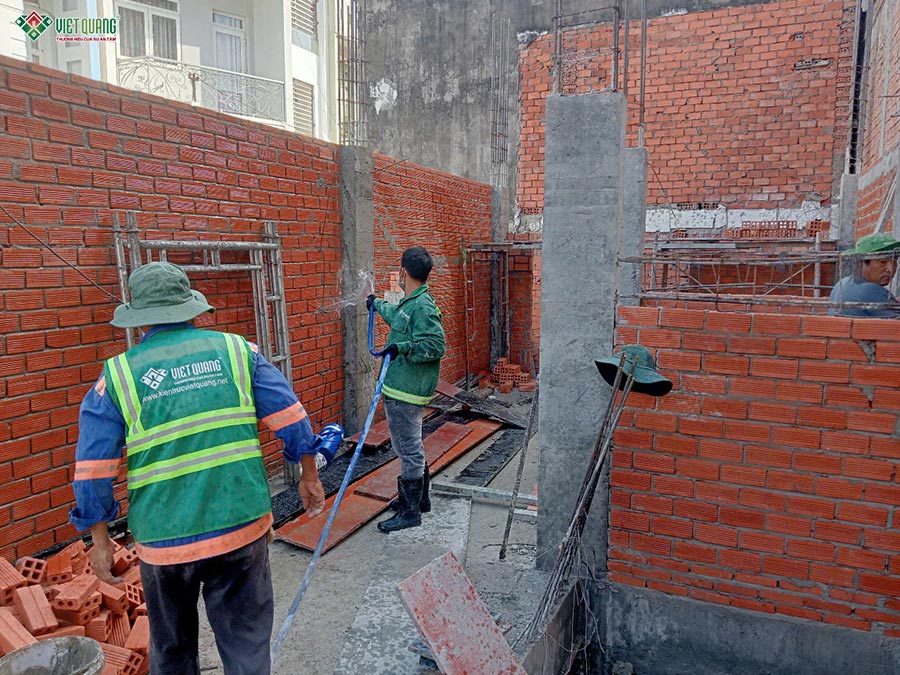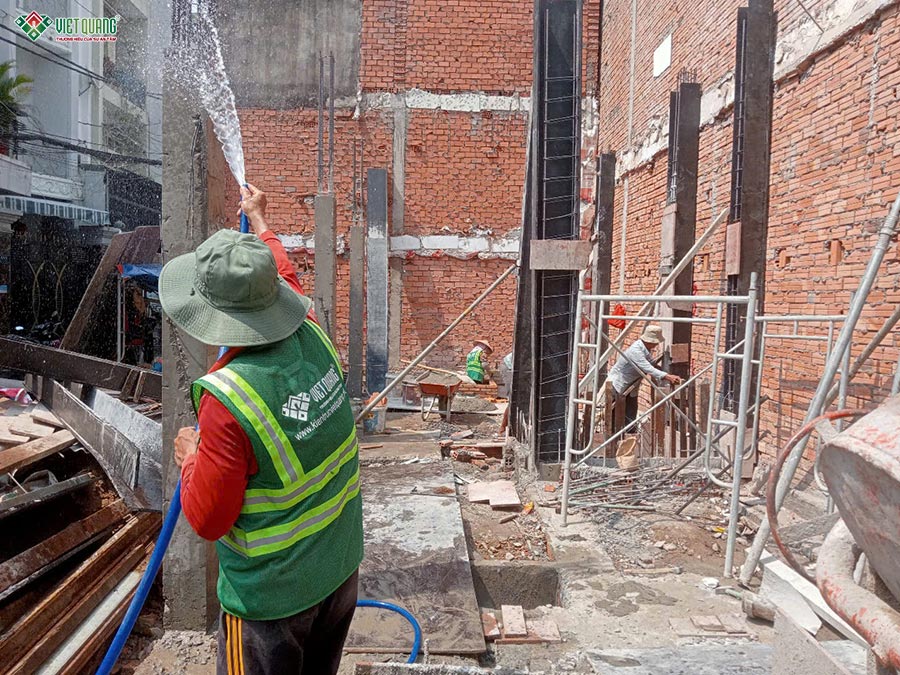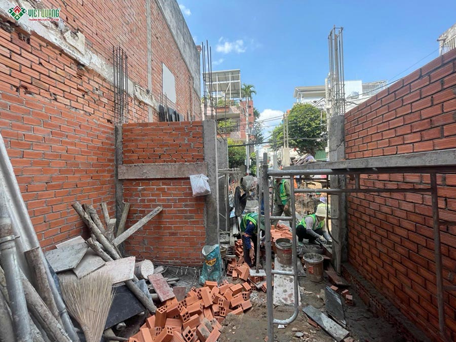 Quá trình thi công xây dựng phần thô được tổ chức theo từng tầng, giúp kiểm soát tốt chất lượng thi công, tiến độ và an toàn lao động. Toàn bộ vật tư sử dụng như thép, xi măng, bê tông đều đạt tiêu chuẩn, được kiểm tra kỹ lưỡng trước khi đưa vào thi công. Ở giai đoạn này, bạn cần lưu ý thi công chống thấm sân thượng, nhà vệ sinh, cổ ống thống sàn,… Và chống nứt cho các khu vực tiếp giáp tường gạch với bê tông,…đảm bảo công trình đạt độ bền vững cao, tạo nền tảng quan trọng cho các giai đoạn hoàn thiện tiếp theo. Xuyên suốt quá trình, đội ngũ kỹ sư, giám sát hiện trường Việt Quang Group thường xuyên theo dõi, nghiệm thu từng hạng mục nhằm đảm bảo chất lượng công trình.