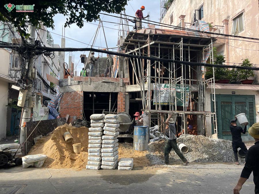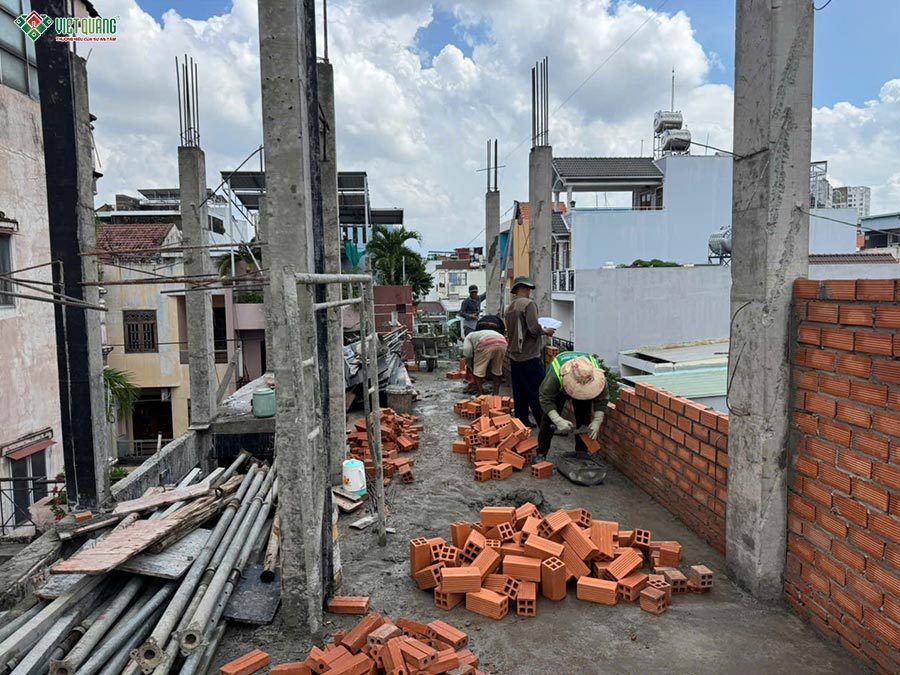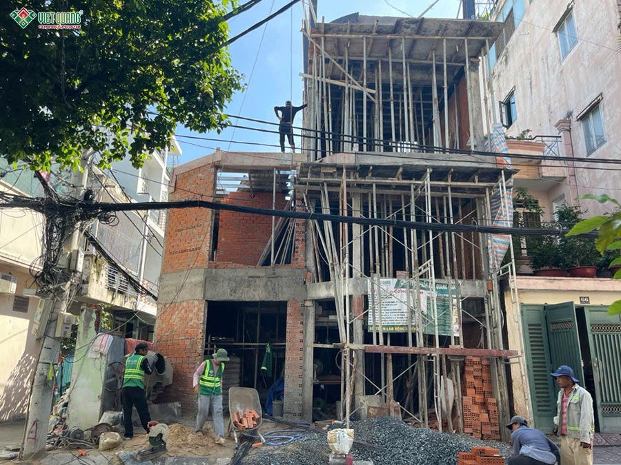 Hạng mục thi công xây dựng phần thô là giai đoạn hình hành “khung xương” vững chắc có vai trò nâng đỗ toàn bộ ngôi nhà 5 tầng. Ở giai đoạn này Việt Quang Group tập trung triển khai đồng bộ các công tác: Dựng cột, dầm sàn, bê tông cốt thép, xây tường bao, tường ngăn, thi công cầu thang và hệ kết cấu chịu lực cho từng tầng. Mỗi hạng mục điều được thực hiện theo đúng hồ sơ thiết kế kỹ thuật đảm bảo độ chính xác về cao độ, kích thước và liên kết kết cấu.