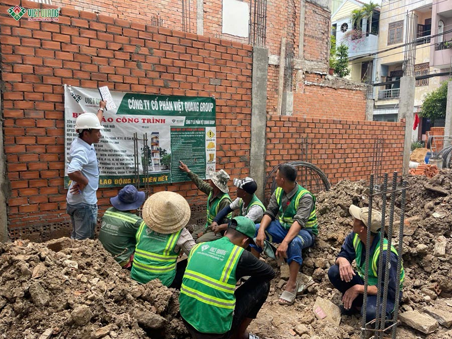 Việt Quang Group vận hành công trình như thế nào? Từ giai đoạn khảo sát, tư vấn, báo giá xây nhà cho chủ đầu tư, đội ngũ gồm các Kiến trúc sư, Kỹ sư với hơn 13 năm kinh nghiệm thực chiến sẽ cùng nhau thảo luận để đưa ra phương án thiết kế thi công phù hợp nhất. Ở giai đoạn thi công, ngoài đội ngũ trực tiếp triển khai công trình thì còn có bộ phận giám sát chất lượng thi công, thường xuyên kiểm tra thông qua báo cáo hình ảnh và trực tiếp tại công trình. Nghiệm thu từng hạng mục thi công cùng chủ đầu tư để đảm bảo tính minh bạch, rõ ràng. Xin ý kiến đánh giá từ chủ đầu tư hai lần một tháng để kịp thời điều chỉnh sao cho phù hợp với mong muốn của từng gia chủ. Cuối cùng là giai đoạn chăm sóc bảo hành định kỳ 3 tháng, 6 tháng và 12 tháng kể từ thời điểm bàn giao công trình.
