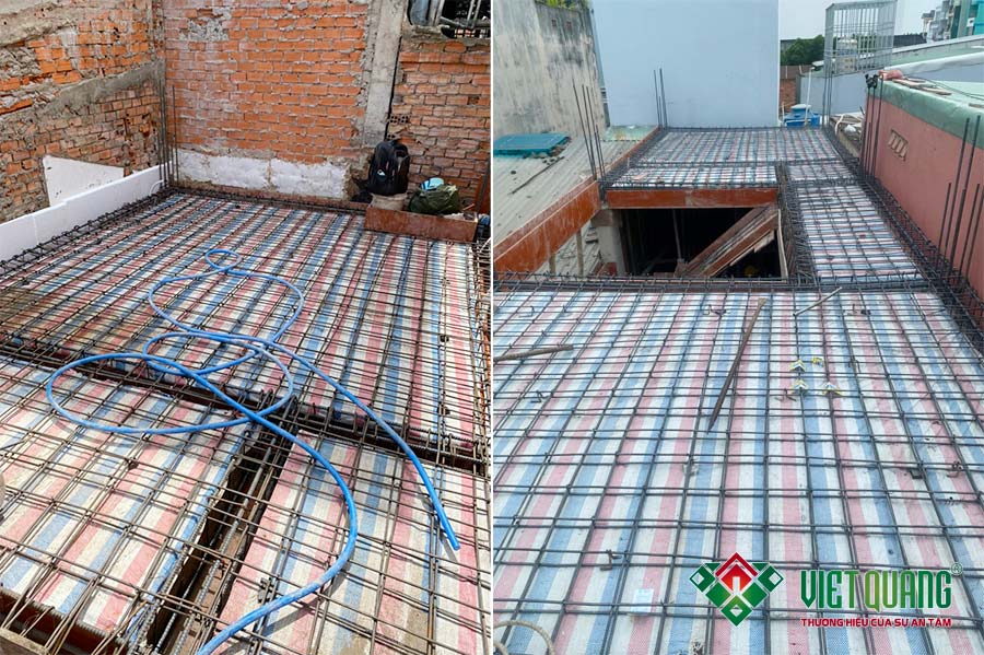 Hình ảnh thép sàn sau khi đã bô thép hoàn tất, chuẩn bị cho công việc đổ bê tông sàn