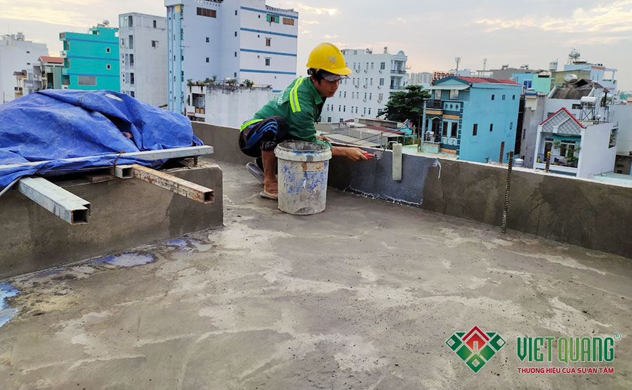 Công Nhân Việt Quang đang thi cống chống thấm mái nhà