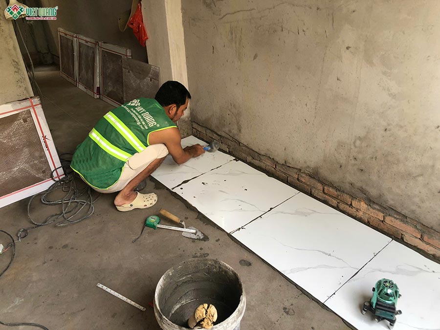 Bước sang giai đoạn hoàn thiện, ngôi nhà dần hình thành rõ nét với các hạng mục ốp lát gạch nền, sơn nước nội – ngoại thất, lắp đặt cửa, lan can, tay vịn cầu thang và thiết bị điện nước. Việt Quang Group chú trọng từng chi tiết nhỏ, từ màu sơn, vật liệu hoàn thiện cho đến ánh sáng, nhằm mang đến một không gian sống hài hòa, hiện đại và đúng với mong muốn ban đầu của gia đình anh Hưng. Tất cả các hạng mục đều được kiểm tra, nghiệm thu kỹ lưỡng trước khi chuyển sang công đoạn tiếp theo.