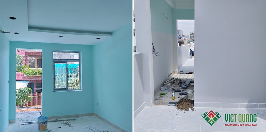 b. Một số hình ảnh thi công phần hoàn thiện nhà phố 4 tầng 3.5x12m