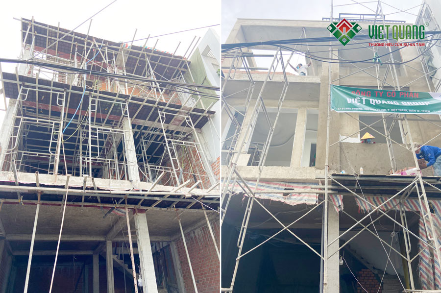 Hình ảnh quá trình thi công xây nhà trọn gói xây nhà trọn gói nhà phố 3 tầng 7.3x13m